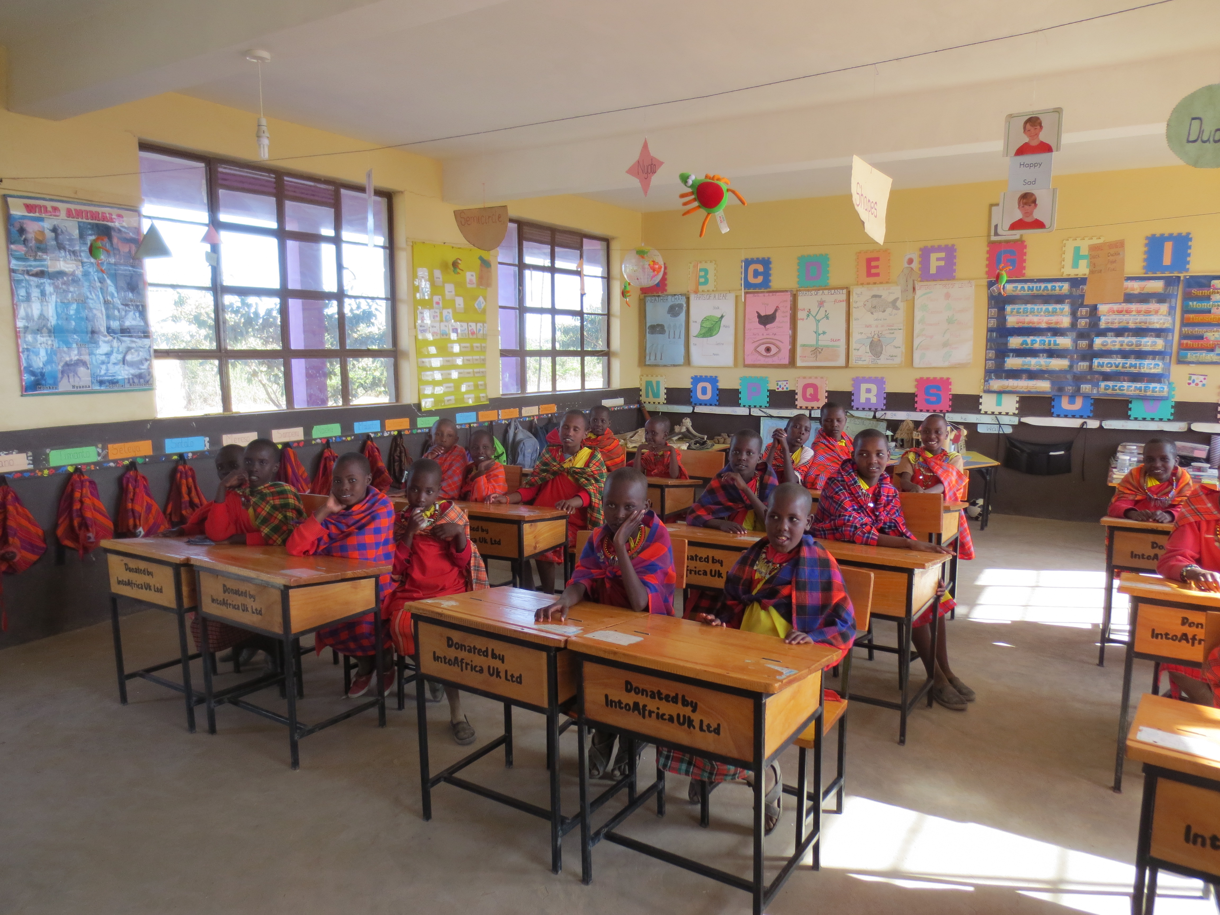 Hellen brought us into a bright and cheerful classroom, where 37 girls are taught. These girls are aged about 7 – 11, and are all boarding students, which means they have been rescued from the prospect of early marriage and FGM (female genital mutilation.) They live at the school until they are educated and old enough to make their own choices. Then they are reconciled with their families. Hellen is fiercely protective of her girls and keeps them safe and secure from anyone who might come into the compound. There have been incidences of girls being “snatched” from the school.