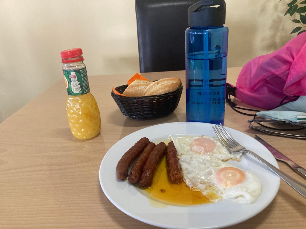 I finally made it known that I wanted “comidas” – a meal. I got eggs, sausage, bread and juice.