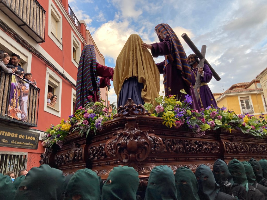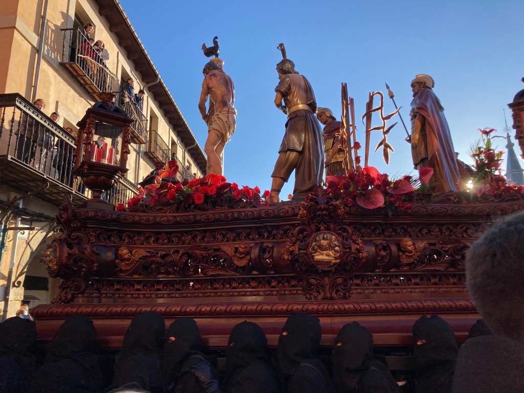 I knew I couldn’t check in so early but I wanted to get out of there, so I figured I’d start walking towards the hotel. And there was an incredible morning procession happening in the main plaza. With 12 different floats, all depicting a scene from the Good Friday story. I didn’t capture them all, and my vantage point wasn’t the best, but they were fantastic.