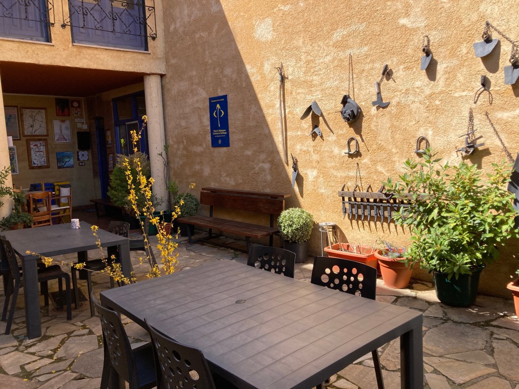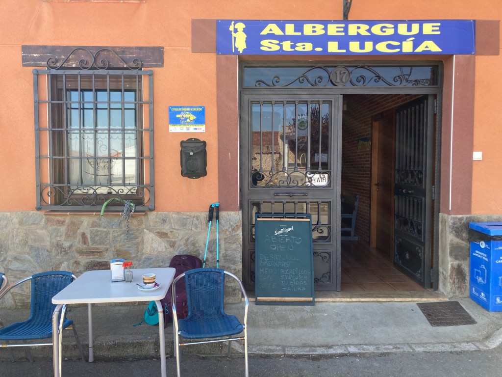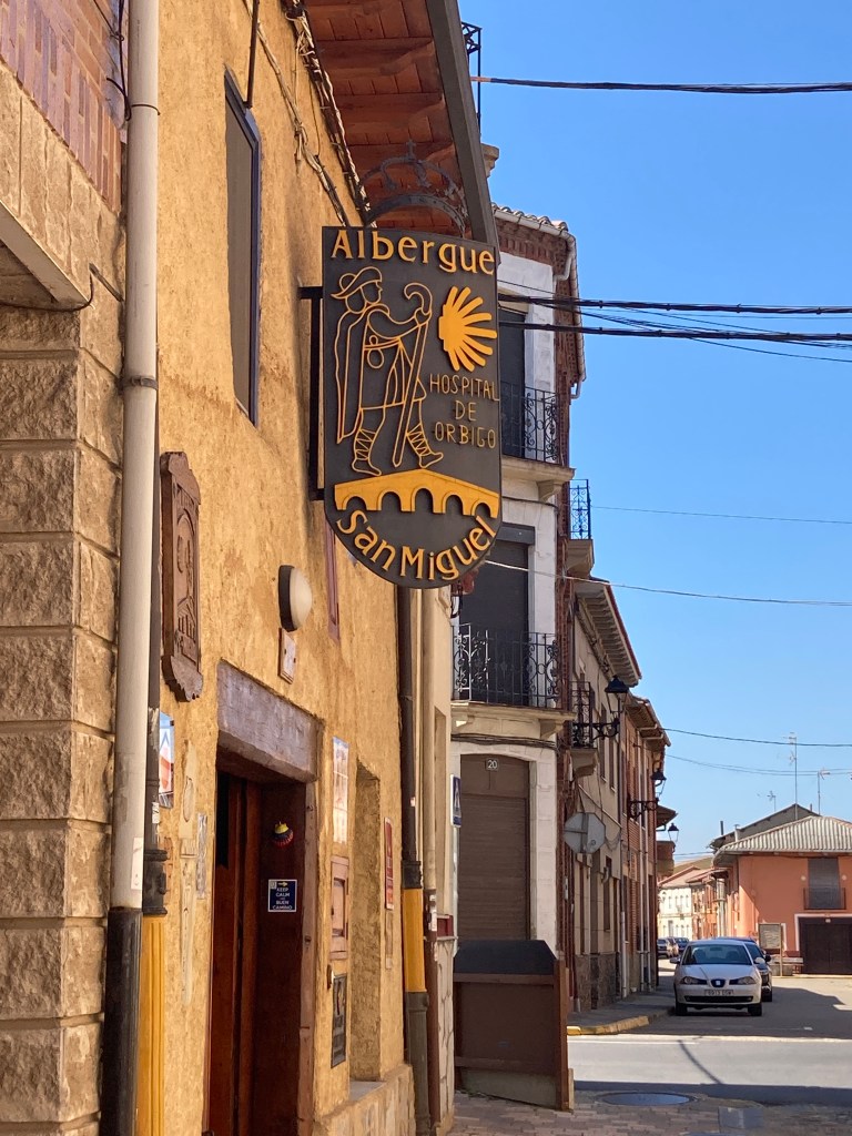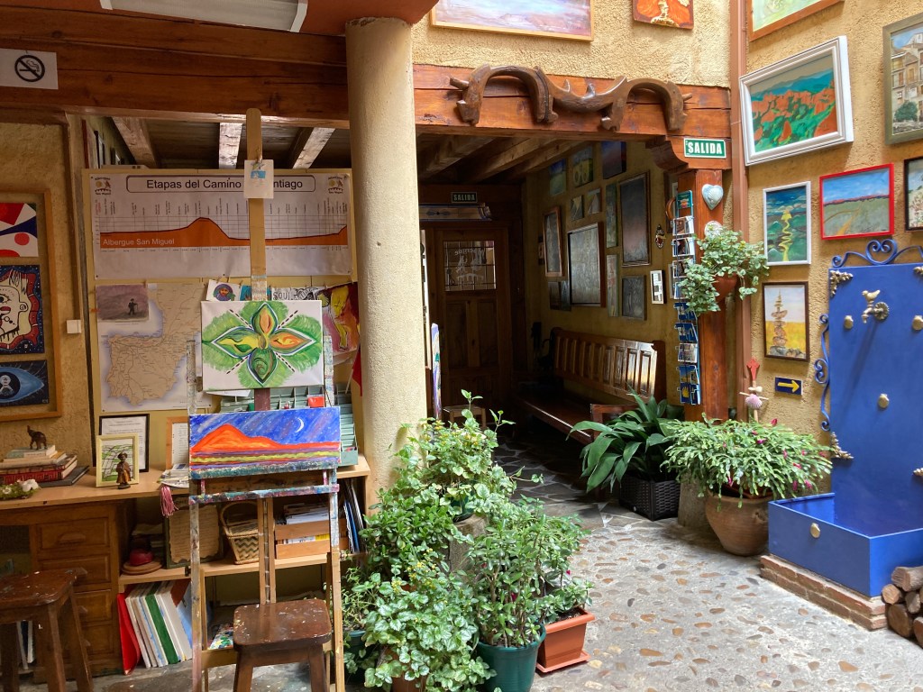 Finally, after the Camino took me behind some factories and along an industrial section, I arrived at Hospital de Òbrigo and my albergue. It’s lovely, with a garden and a “painting station” for Pilgrims to create artwork that is the hung on the walls.