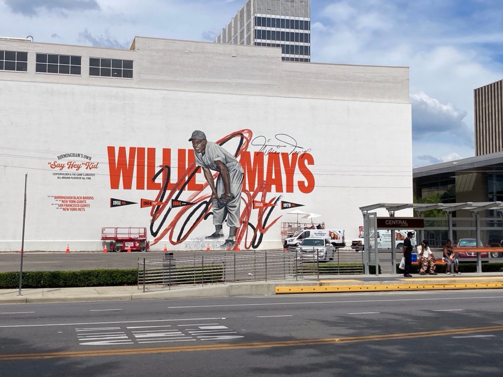 The game was between two AA teams – the Montgomery Biscuits and the Birmingham Barons. They put on a great show and it ended up being a nail-biter at the end. The crowd was in great spirits and it felt like…well, like baseball. Right before the 8th inning, there was an announcement. In a somber tone, and with a picture displayed on the screen, it was announced that Willie Mays had died that afternoon, at the age of 93. Everyone rose to their feet and some people took off their caps as they played the “Say Hey Kid” song. Mays was Birmingham’s hometown hero and a class act. The game on the 20th was dedicated to him and he had already put out a statement with his regrets that he couldn’t be there and about how much Rickwood meant to him. It somehow seemed fitting that he should pass away during a game at “his” field.
