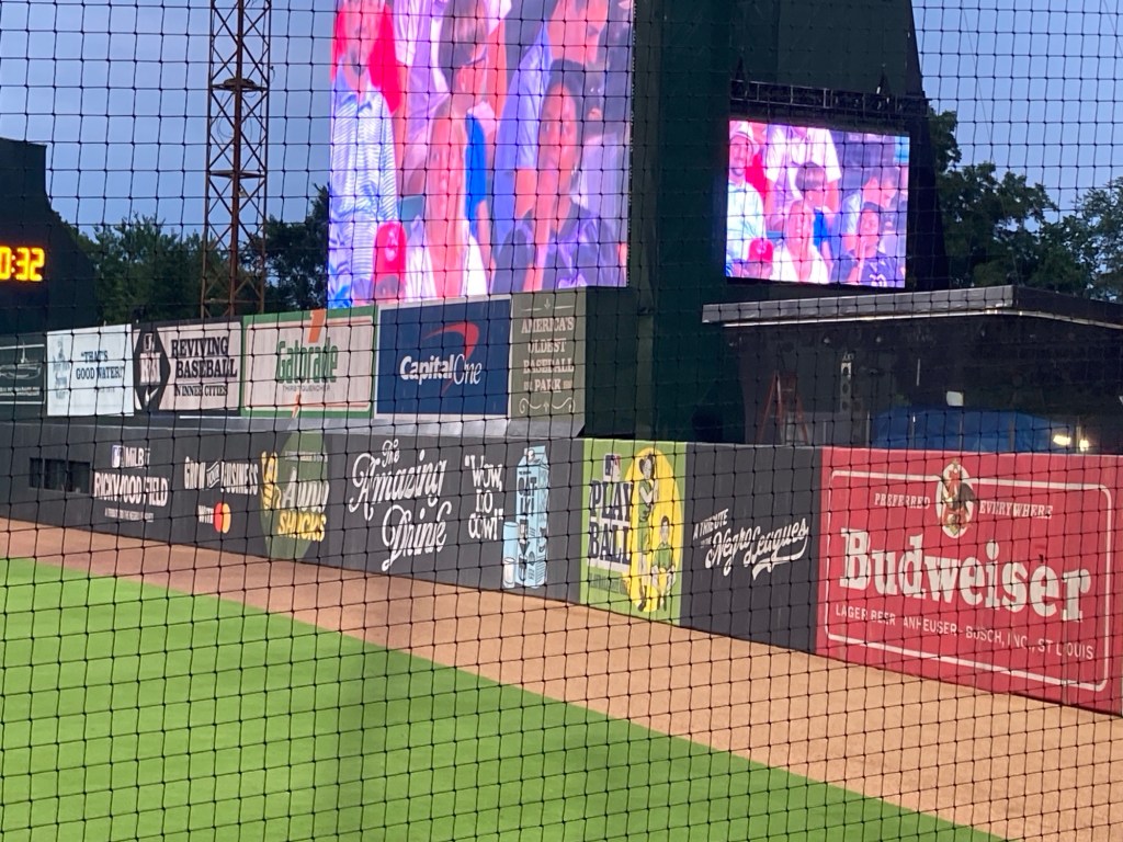 They had recreated the field as it was, complete with scoreboard and ads. The original turnstiles and ticket booths were intact, as well as an exhibit of the clubhouse and lockers. Of course, they had added some modern touches, such as a Jumbotron. And the field’s lighting was inadequate so they had brought in lights on huge trucks.