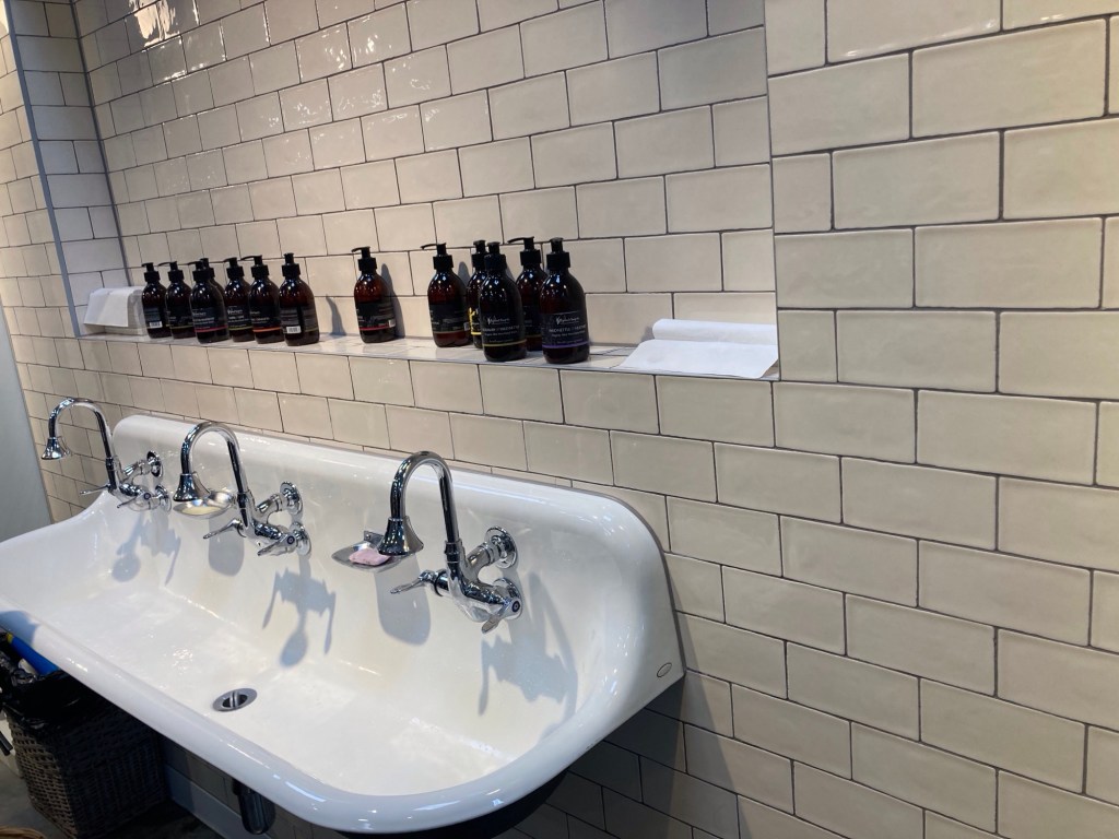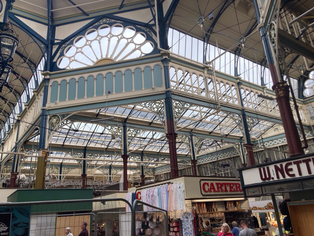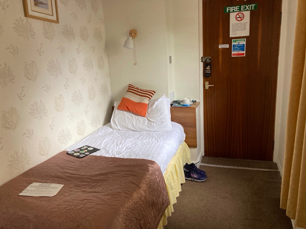 My hotel in London was again near Kings Cross but it was a proper hotel this time, rather than student accommodation. Still no air conditioning but a huge window that let the breezes in and a little “Juliette” balcony. Tiny room, but comfortable bed, plenty of outlets, a tea kettle and a private bath. The bathroom had an integrated shower, like on a boat or a train.