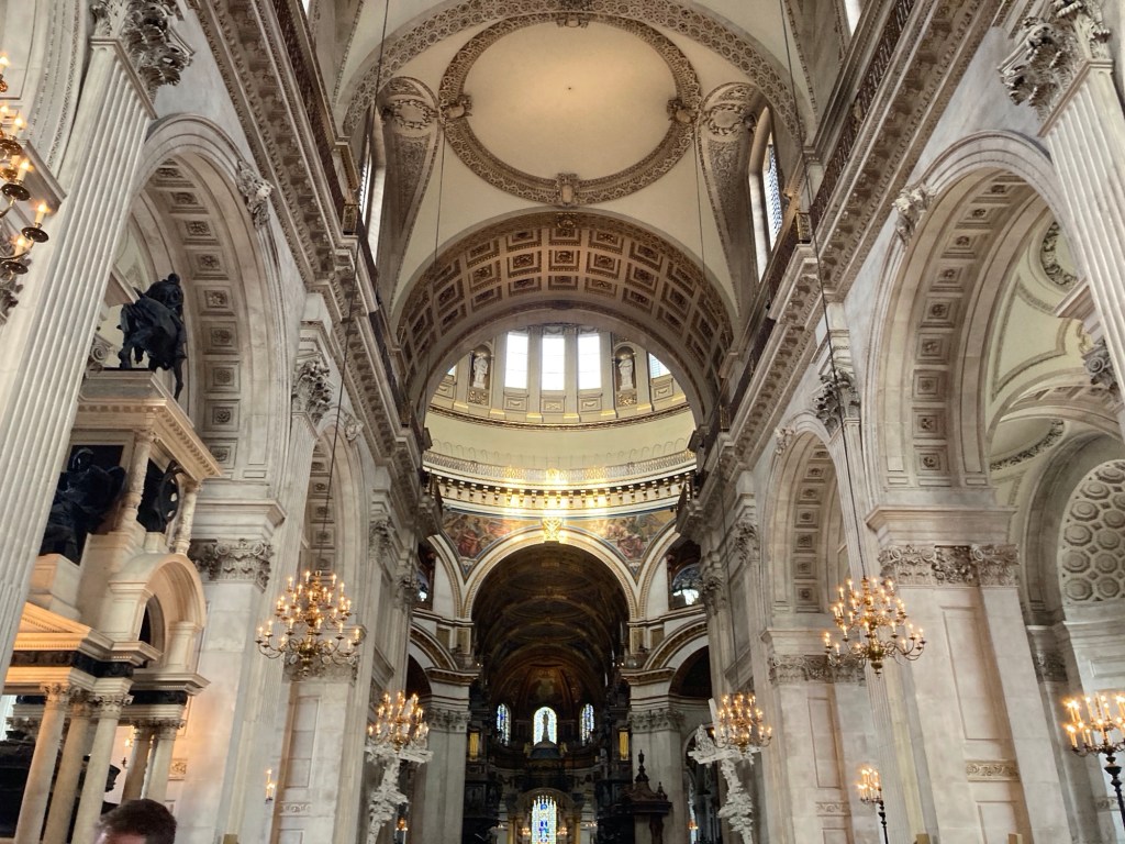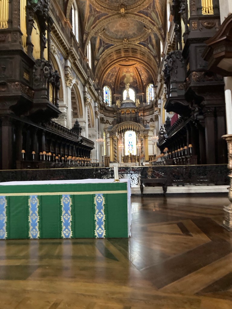 I got to the Cathedral in time for Evensong…and I even got to sit in the Quire. Such a beautiful building. Such beautiful music. No little old bird woman was sitting on the steps, but I did see the Saints and Apostles looking down.