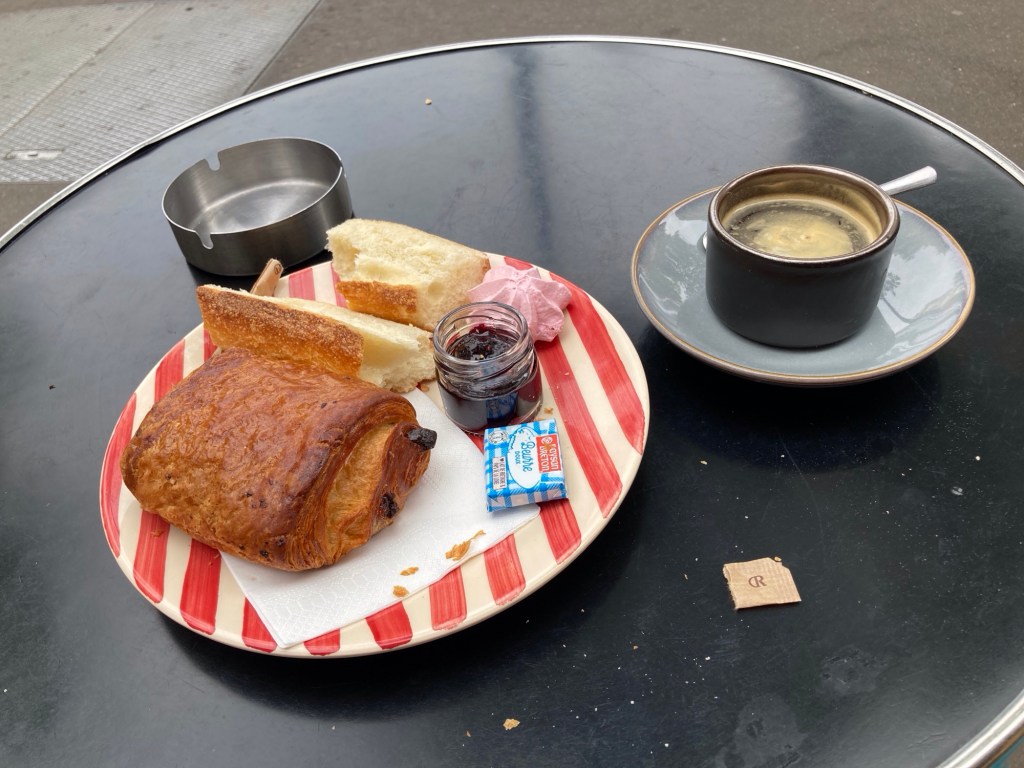 I originally had a sort of plan…I was going to make my way down to the Louvre and spend a few house there, and then walk along the Seine, where hopefully there would be a breeze. However. I discovered that the Louvre was closed on Tuesdays! Also, due to the Olympics, the price was a single Metro ticket was doubled and many of the bus routes were diverted. Also…it was hot and humid. I revised my plan and decided to take an open top bus tour. I booked a ticket with “TOOT BUS” 🙄 and slowly walked down to the nearest stop, which was right by the Opera. On the way, I stopped at a cafe in Franz Liszt Square and had a proper breakfast.