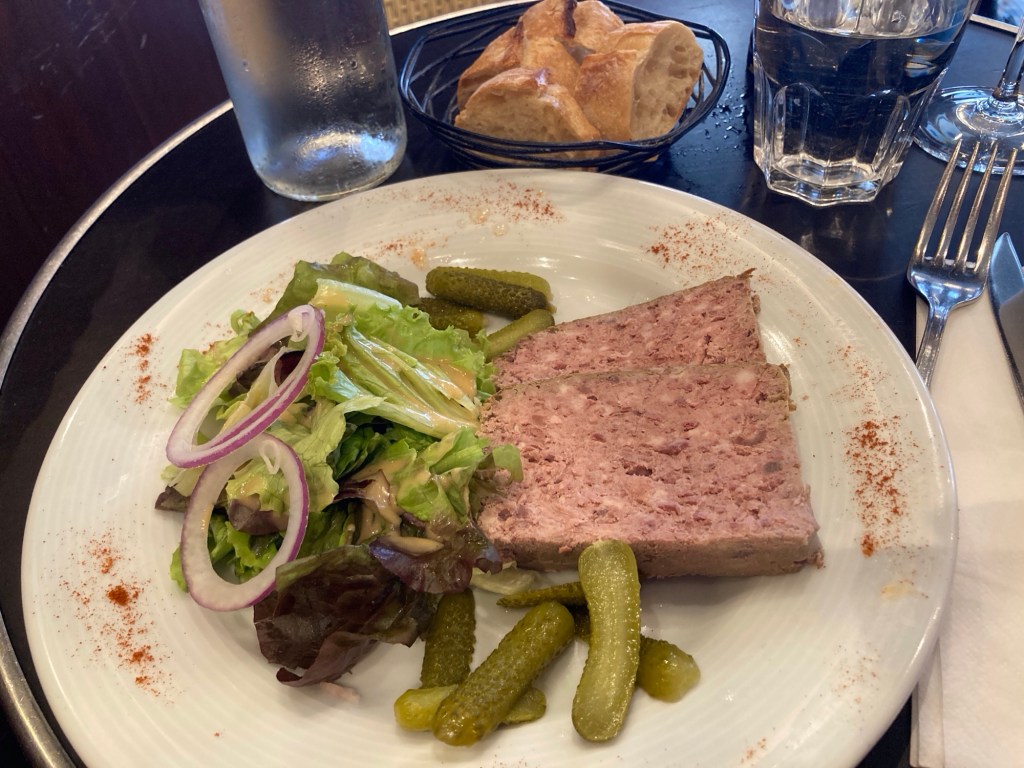 Now I wanted food…French food. I was hoping to find someplace that made cassoulet, but I had to settle for pâté and beef Bourguignon. Oh, and a glass of excellent red wine.